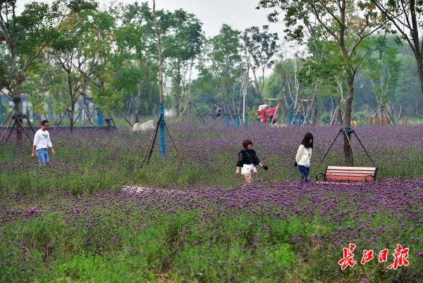 10月13日,东西湖径河公园,游人在马鞭草花田里漫步。记者李永刚 摄