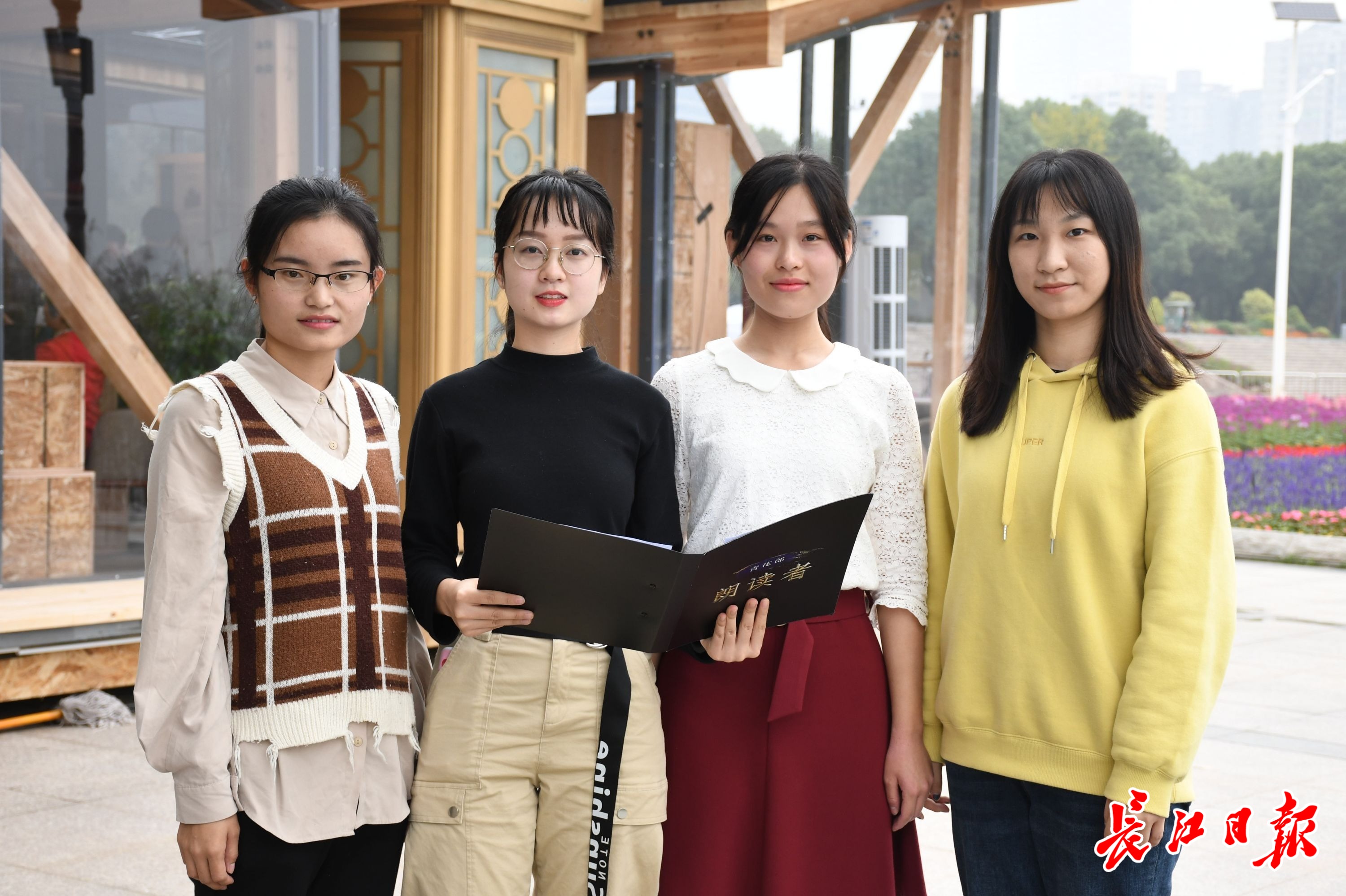 朗读者(从左至右)于金秋、郑妍星、郭佳昕、高瑞雪现在武汉大学读研究生,在东北大学读本科时她们四人就是同一个寝室。记者詹松 摄