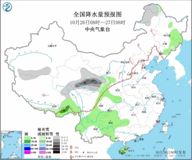 26-27日,内蒙古大部、华北大部、东北地区等地的部分地区气温将先后下降4~6℃,并伴有4~5级风,阵风6~7级。另外,青海中东部、甘肃中南部及内蒙古东北部、黑龙江西北部等地部分地区有小到中雪或雨夹雪,局地有大雪。