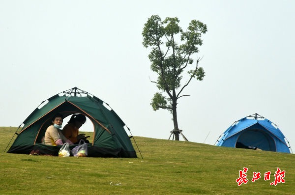 10月29日,东湖高新区西苑公园吸引了不少市民游玩、野餐,很多市民搭起帐篷在草地上露营赏秋色。 记者李子云 摄