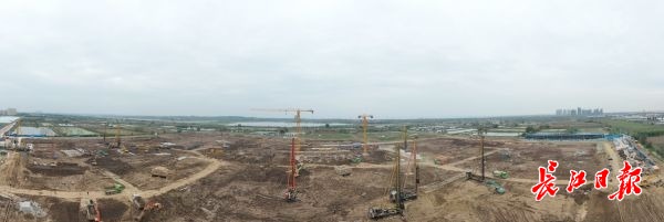 下午3时,记者在位于新洲区龙王咀农场的施工现场看到,数十台挖掘机、桩机、塔吊正在有条不紊运作中,400余名建设者正全力奋战。