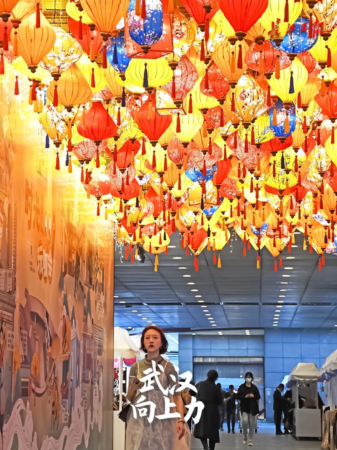 武商广场和武汉国际广场中间的通道,挂满了灯笼。