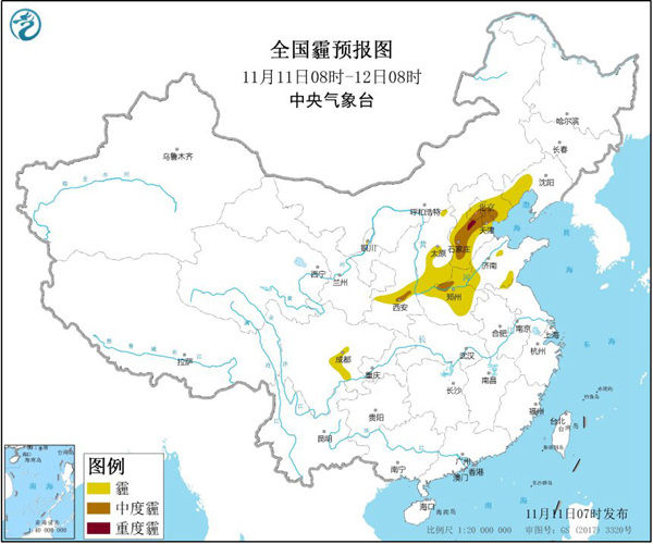 同时,随着冷空气势力转弱,静稳天气形势建立,华北平原一带大气扩散条件转差。预计11日至12日上午,华北中南部、黄淮、汾渭平原等地大气扩散条件较差,将有轻至中度霾。12日上午起,受弱冷空气影响,上述地区霾天气自北向南逐渐减弱或消散。公众外出需做好健康防护,减少户外活动时间,同时注意防范低能见度对交通出行的不利影响。