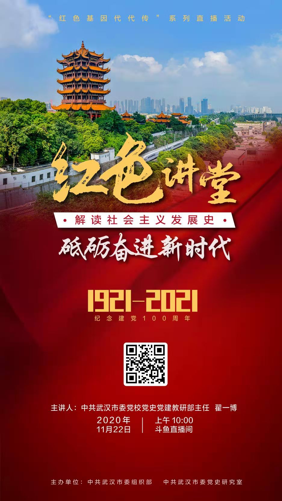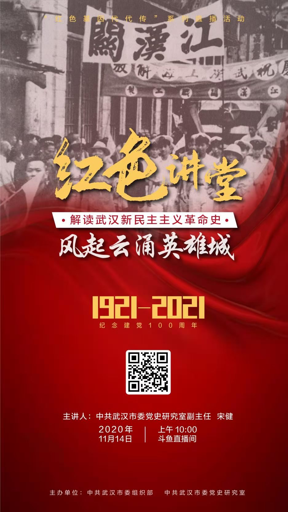长江日报-长江网11月13日讯(记者胡雪璇 通讯员周薇)明年是中国共产党成立100周年,为传承革命精神、继承光荣传统,进一步激发全市党员队伍砥砺奋进、干事创业热情,市委组织部联合斗鱼网络科技有限公司开展“红色基因代代传”纪念建党100周年系列直播活动。系列直播活动由6个专题组成,依次分别为“红色足迹——不忘来时的路”“红色讲堂”“红色记忆——老照片老家书老物件老建筑背后的故事”“90对话90”“战‘疫’一线党旗红”“后浪风采”。首个专题直播活动“红色足迹——不忘来时的路”已于10月开展,4场直播活动累计观看人数达553万。本周六(14日)将开展第二个专题“红色讲堂”的首场直播活动。