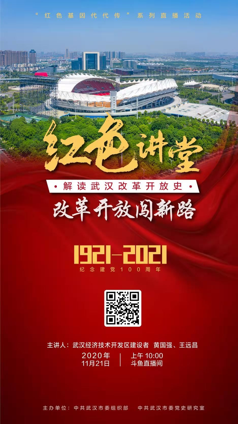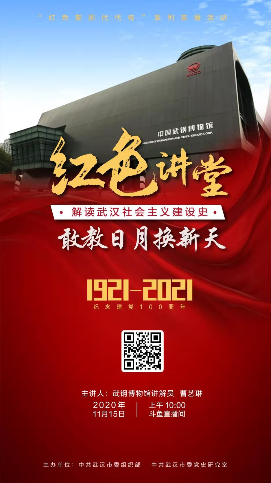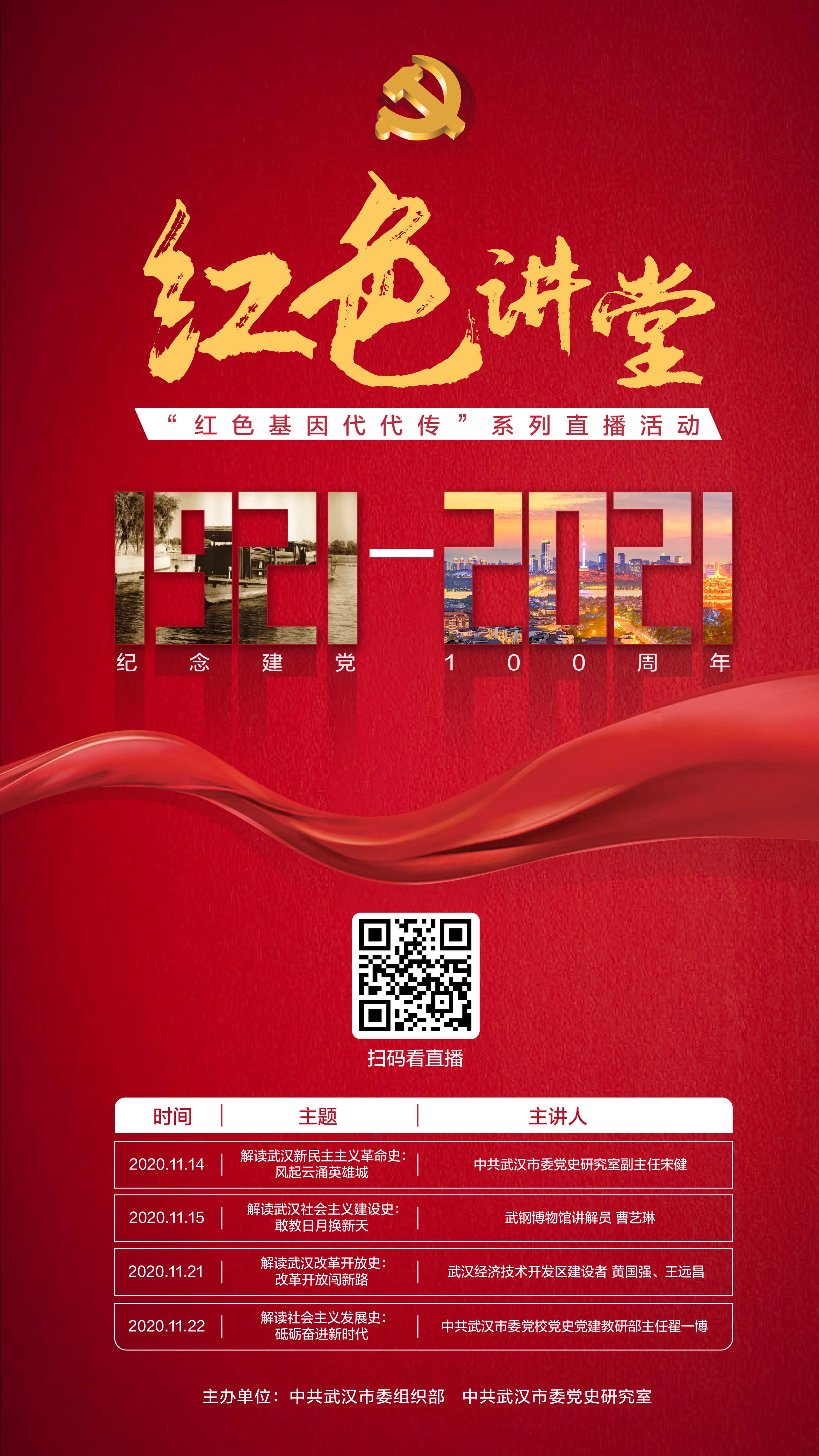 “红色讲堂”专题直播活动由市委党史研究室负责组织开展,本月将进行4场网络直播。活动将深入武汉中学和武汉中央军事政治学校旧址、八路军武汉办事处旧址纪念馆、武钢博物馆、武汉经开区南太子湖创新谷、武汉市委党校等地,围绕武汉新民主主义革命史、武汉社会主义建设史、武汉改革开放史、社会主义发展史等内容,以在线讲授的方式,开展网络直播。
