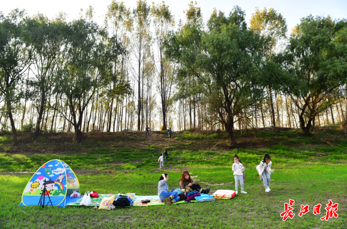 秋高气爽,不少市民抓住“秋天的尾巴”出门郊游。东西湖府河河滩上,人们踏青野餐。记者李永刚 摄