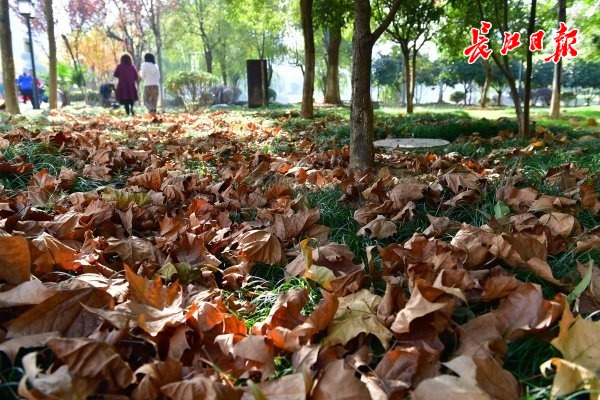 沙湖公园的一片梧桐树下的落叶。 记者李永刚 摄