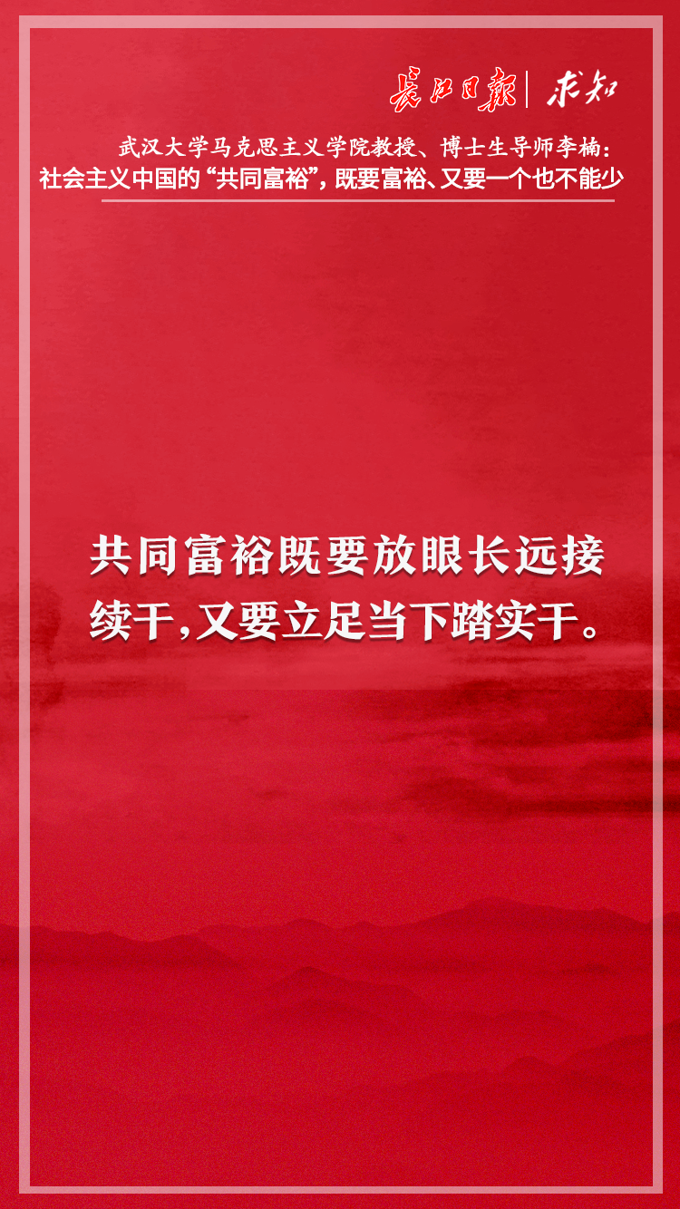 《中共中央关于制定国民经济和社会发展第十四个五年规划和二〇三五年远景目标的建议》(以下简称《建议》)中,首次把“全体人民共同富裕取得更为明显的实质性进展”作为远景目标提出,引人关注。“共同富裕”,既是“天大的事”,作为建设社会主义现代化国家的奋斗目标正式列入了党的纲领性文件,又是“极小的事”,与每一个中国人的生活直接相关。如何深入理解“共同富裕取得更为明显的实质性进展”,长江日报“求知”采访了武汉大学马克思主义学院教授、博士生导师李楠。