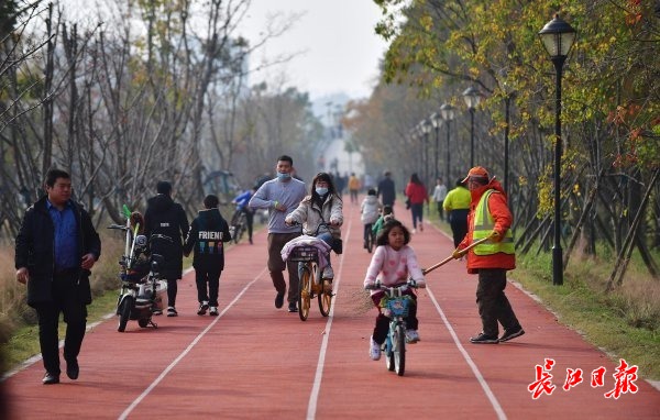 11月29日,久违的太阳终于露脸,午后的金银湖绿道游人众多,热闹非凡。记者李永刚 摄