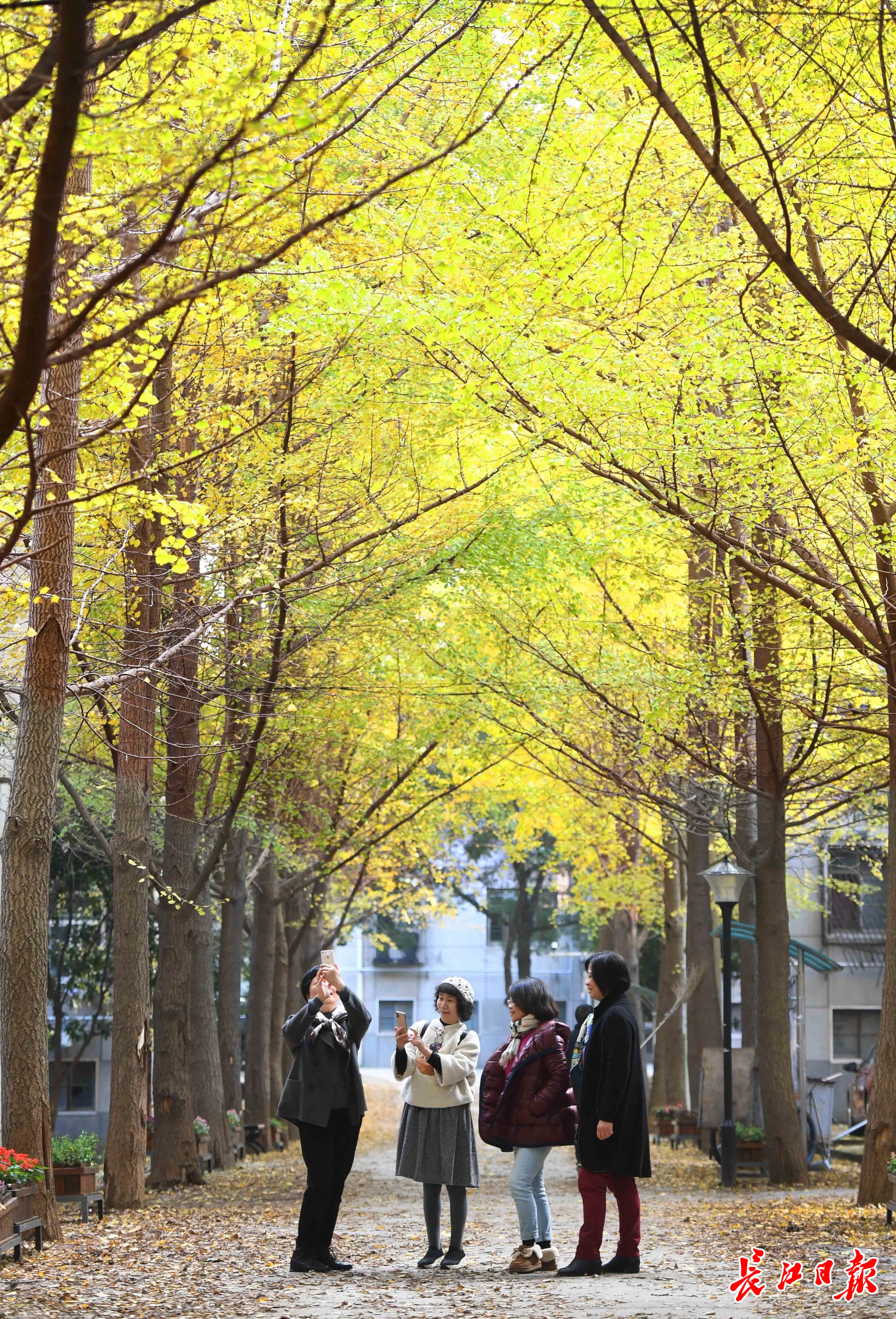 11月30日,华中科技大学东校区的银杏树叶黄了,形成一条金色通道。 记者高勇 摄
