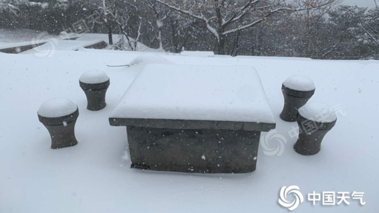 近日,河南嵩山气象站雪花纷纷扬扬落下,天地间白茫茫一片。(图/侯少锋)