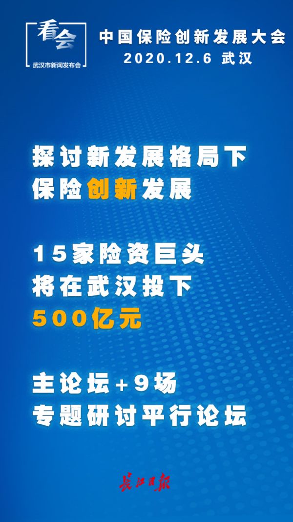长江日报-长江网12月3日讯(记者陈小敏 王丹妮)12月3日,中国保险行业协会、武汉市人民政府新闻办公室在武汉就中国保险创新发展大会筹备情况联合召开新闻发布会。据介绍,大会将在12月6日召开,届时,来自国家部委、地方政府、科研院所、相关机构的领导专家以及保险机构高管齐聚一堂,共同探讨新发展格局下保险创新发展的重大课题,以实际行动助力武汉经济发展。中国平安、中国太保等15家险企巨头将在武汉投下500亿元,支持武汉高质量发展。
