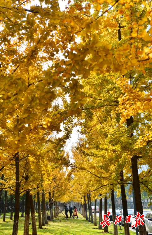 12月4日,市民之家旁满树的银杏叶被太阳照得金黄透亮,分外耀眼。记者李永刚 摄