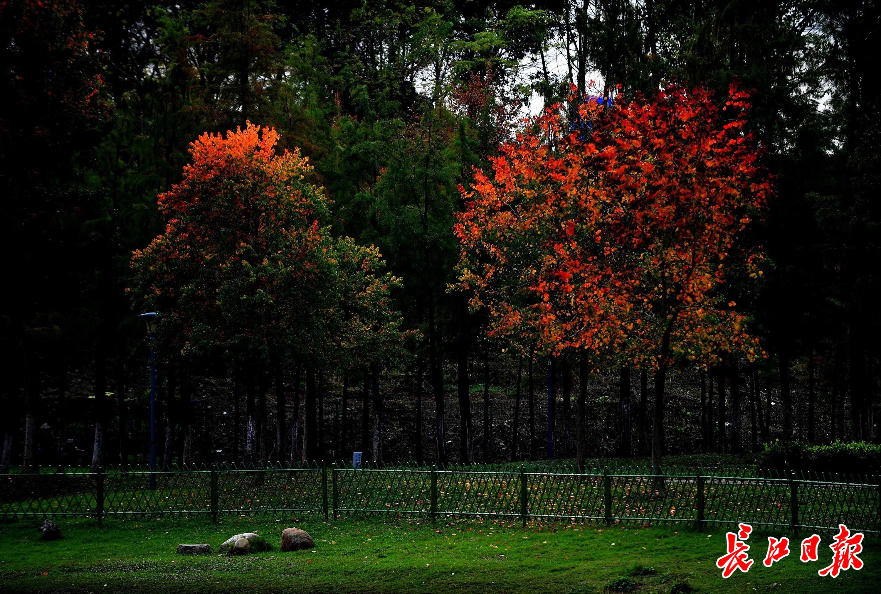 12月6日,府河郊野公园的乌桕树绚丽多彩。记者李永刚 摄
