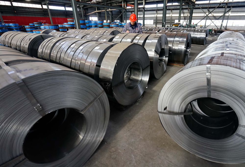 工人在河北省唐山市丰润区新军屯镇一家特种带钢生产企业的车间工作(2019年5月5日摄)。新华社记者 杨世尧 摄