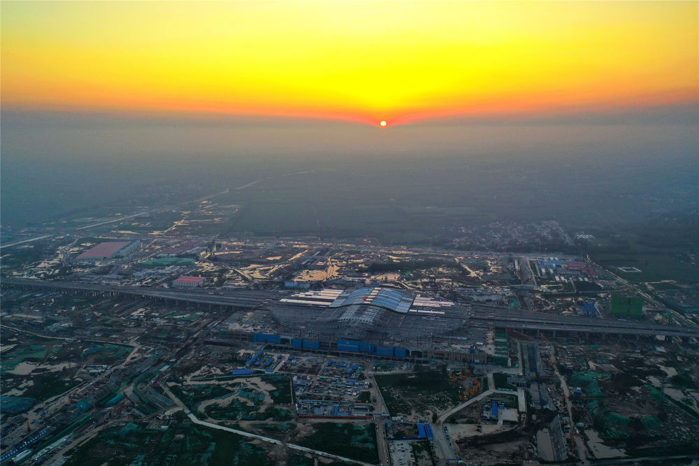 这是2020年8月13日拍摄的京雄城际铁路雄安站施工现场(无人机照片)。新华社记者 牟宇 摄