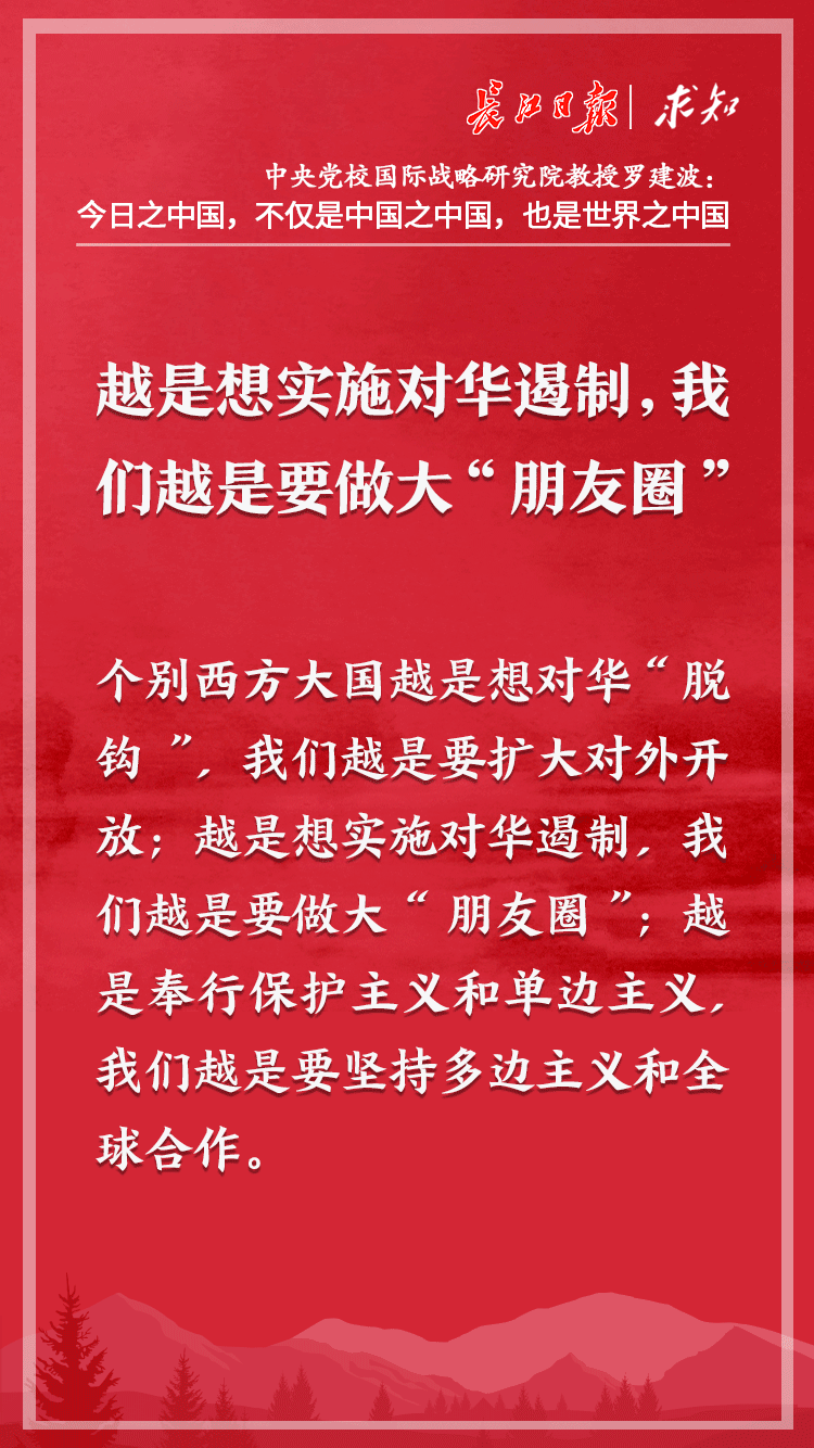 保持战略定力。其中最重要的方面,一是始终把工作重心置于国内发展之上,始终优先把自己的事情办好。这是实现国家富强、民族振兴、人民幸福的根本需要,是中国共产党人的初心和使命所向,同时也只有中国自身发展了,才能为世界的和平与发展作出更大贡献。二是始终坚持改革开放的既定方针,始终深入推进经济全球化进程。个别西方大国越是想对华“脱钩”,我们越是要扩大对外开放;越是想实施对华遏制,我们越是要做大“朋友圈”;越是奉行保护主义和单边主义,我们越是要坚持多边主义和全球合作。只有如此,才能化压力为动力,变被动为主动。