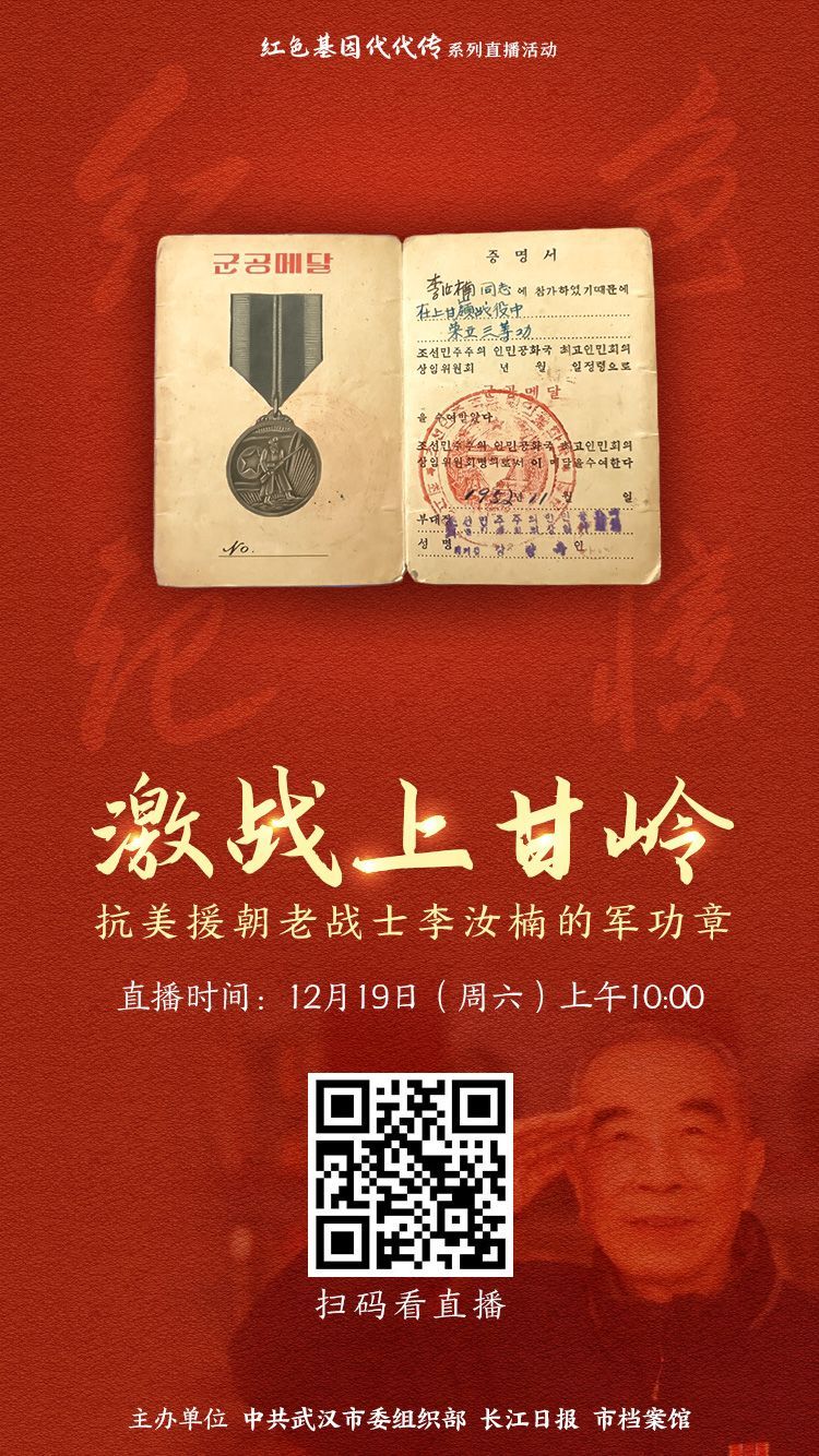 长江日报-长江网12月17日讯(记者万建辉)“红色记忆——老照片老物件老建筑背后的故事”首场直播将于本周六(19日)上午10时举行,从抗美援朝老战士李汝楠的军功章讲起,追忆激战上甘岭的故事。