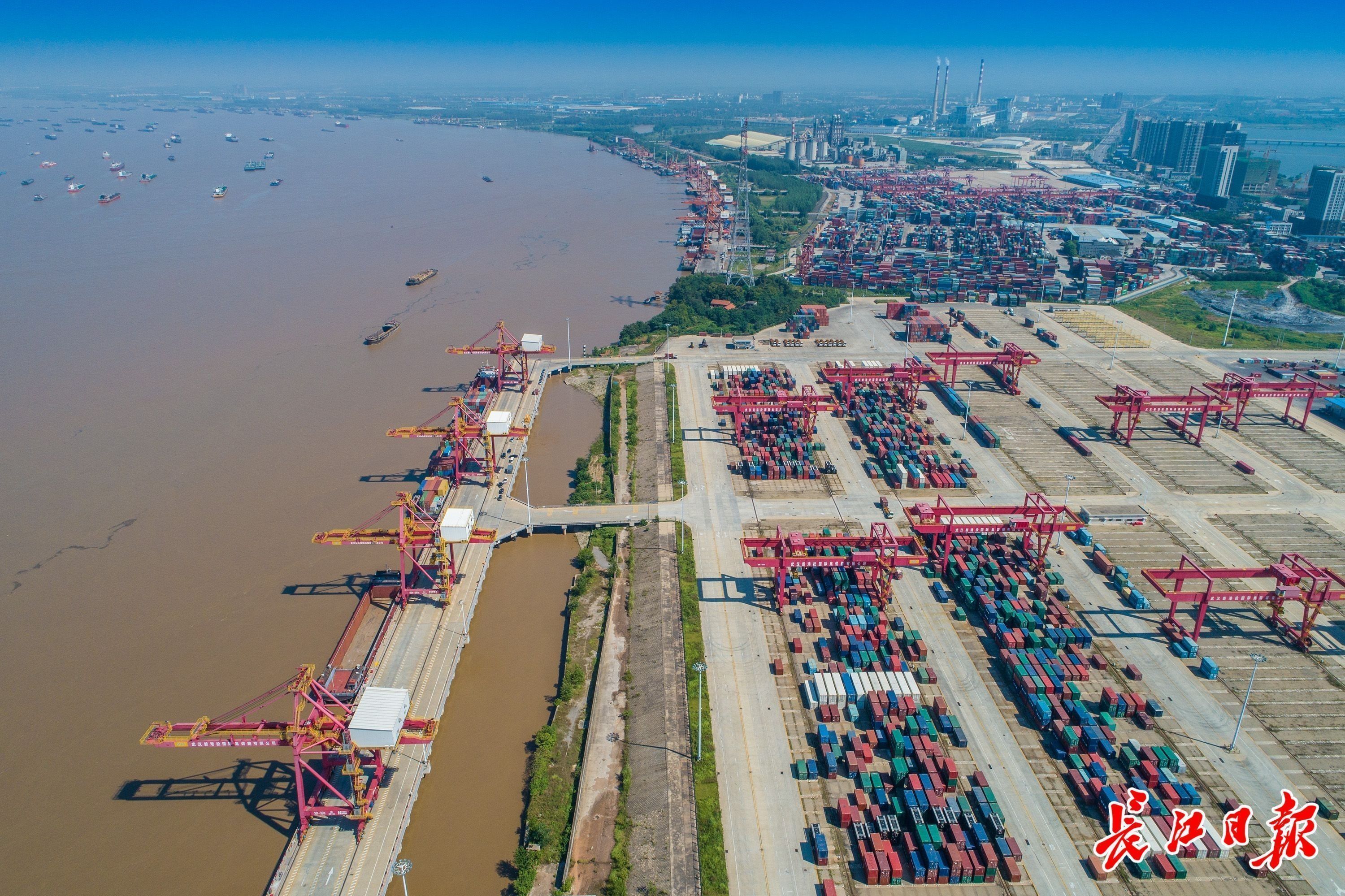 武汉新港委相关负责人介绍,枢纽港口建设实现新提升,初步形成长江中游集装箱、汽车滚装两大枢纽港口集群,先后建成阳逻港三期、金口港、花山港、经开港等17个集装箱码头泊位和金口安吉物流滚装码头、汉南卓尔滚装码头及配套设施等建设,集装箱、汽车滚装运输能力均位居全国内河港口之首。