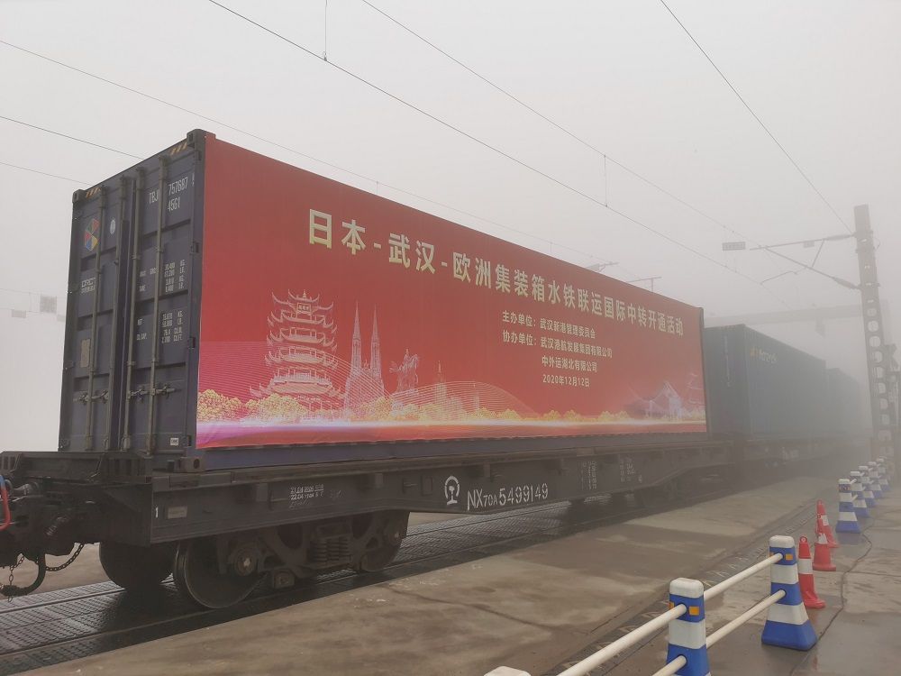 12月12日,编组49辆的X8015/6次列车从武汉驶出,满载676.9吨湖北企业生产的电子元器件、机电产品等货物一路向西,驶往德国杜伊斯堡。部分集装箱大柜中,满载着移动垃圾箱、手推货运车、振动测试记录仪等产品,装载这些产品的集装箱从日本名古屋港经海运、水运直达武汉阳逻港,然后搭乘中欧班列(武汉)前往欧洲。
