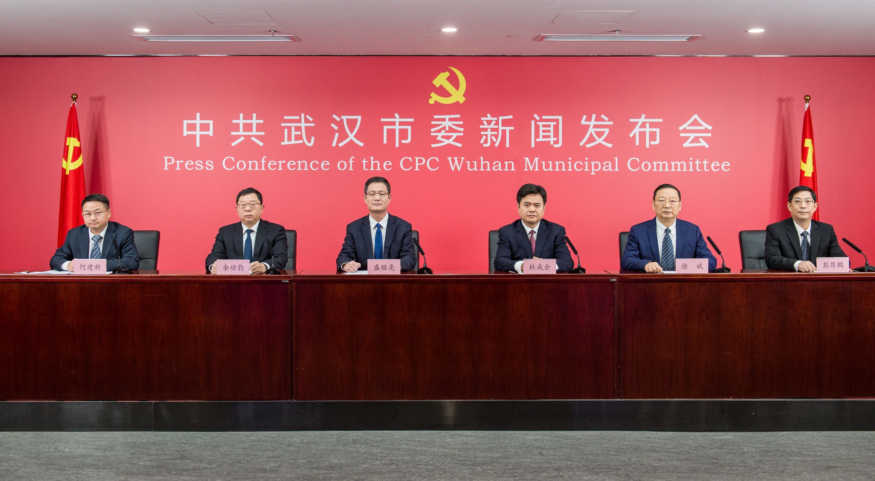 中共武汉市委新闻发布会现场。记者任勇 摄