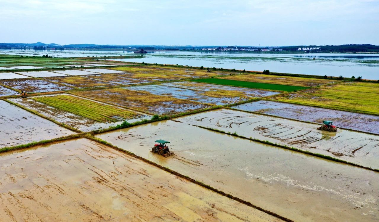 2020年7月30日,江西省吉安市吉水县醪桥镇袁家村早稻收割后,村民们正忙着翻耕农田,按时播种晚稻,确保今年粮食丰收。