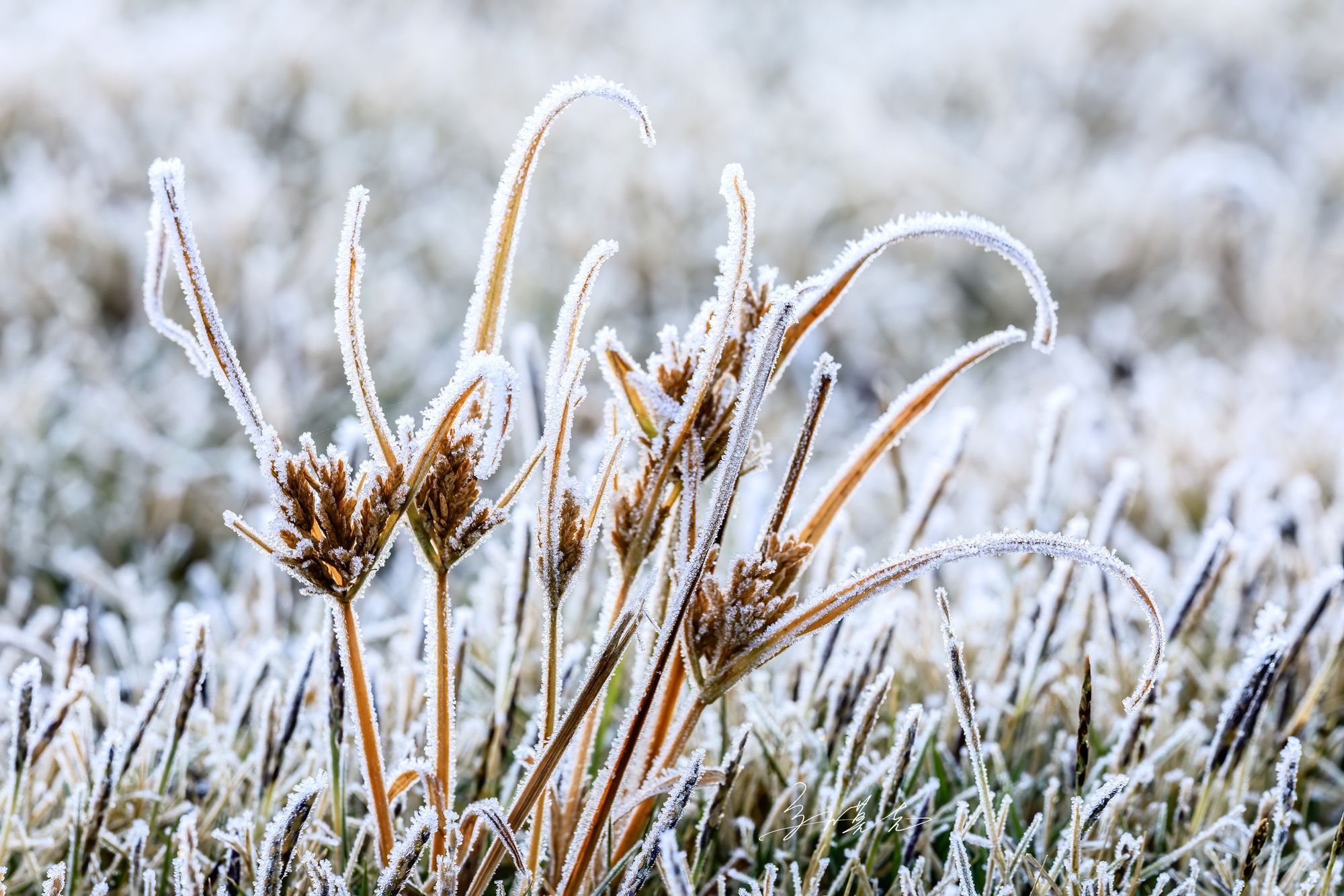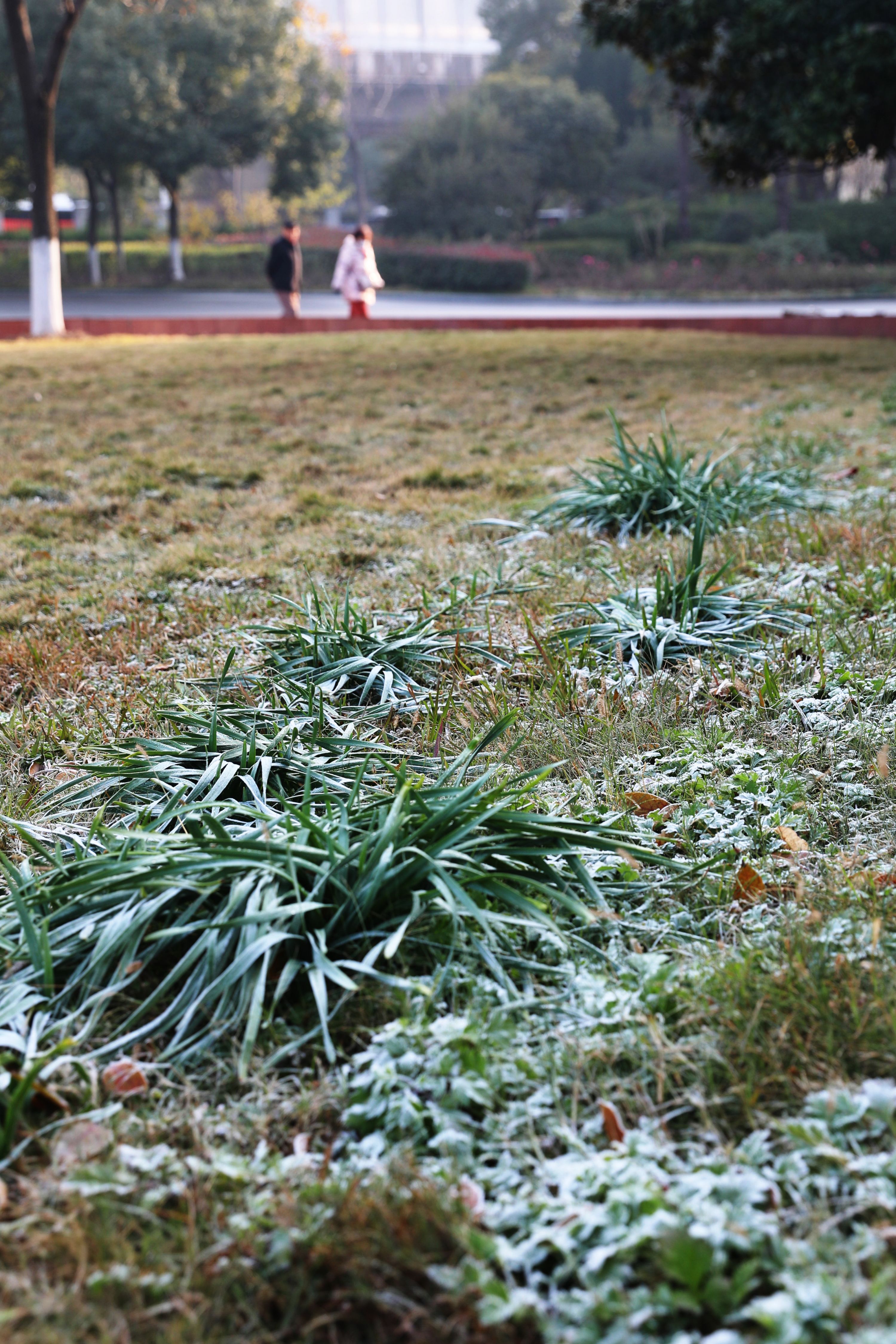 12月22日,武汉动物园,草丛中霜花未消。城市摄影队 王新 摄
