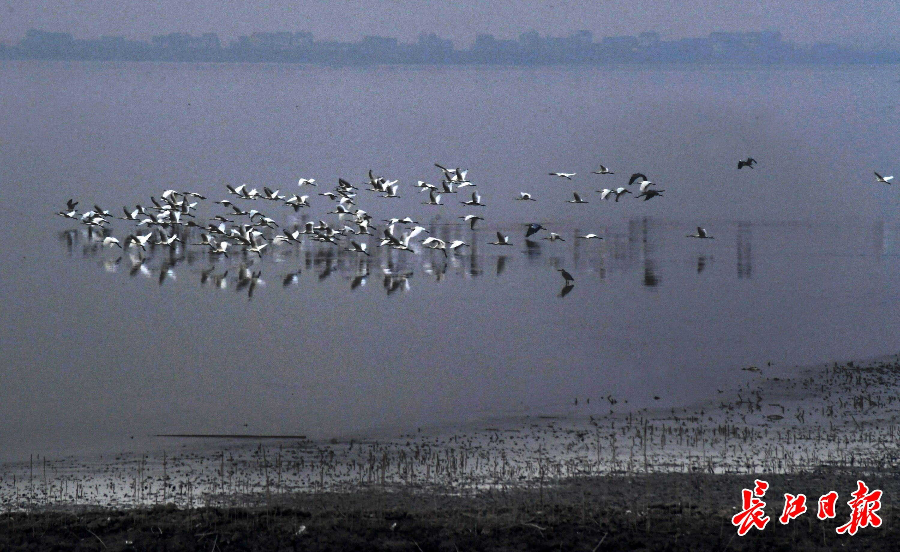 12月24日,武汉市沉湖湿地,数以万计的候鸟在此飞翔、栖息,场面十分壮观。记者李子云 摄
