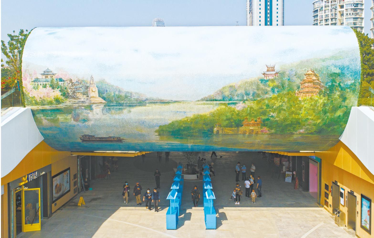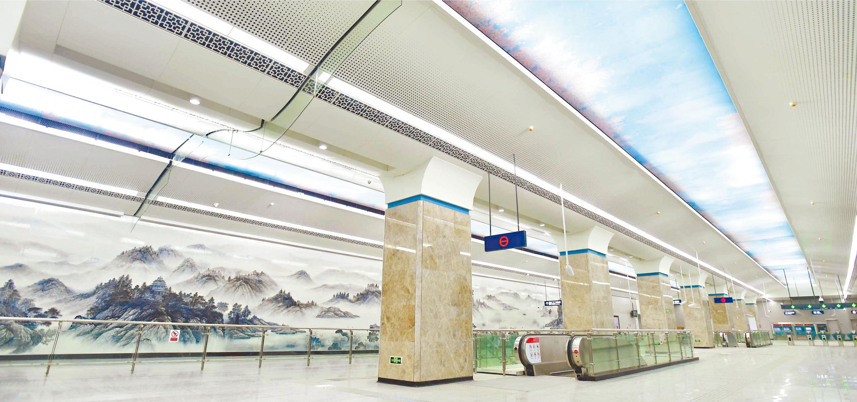 地铁8号线特色站洪山路站站厅现高颜值景观。