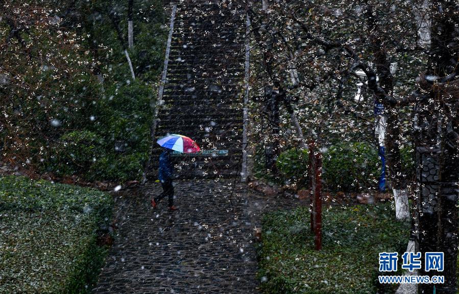 12月29日,在安徽省合肥市,游客冒雪游览包公园。当日,入冬最强寒潮来袭,多地迎来今冬最寒冷天气。新华社记者韩旭 摄