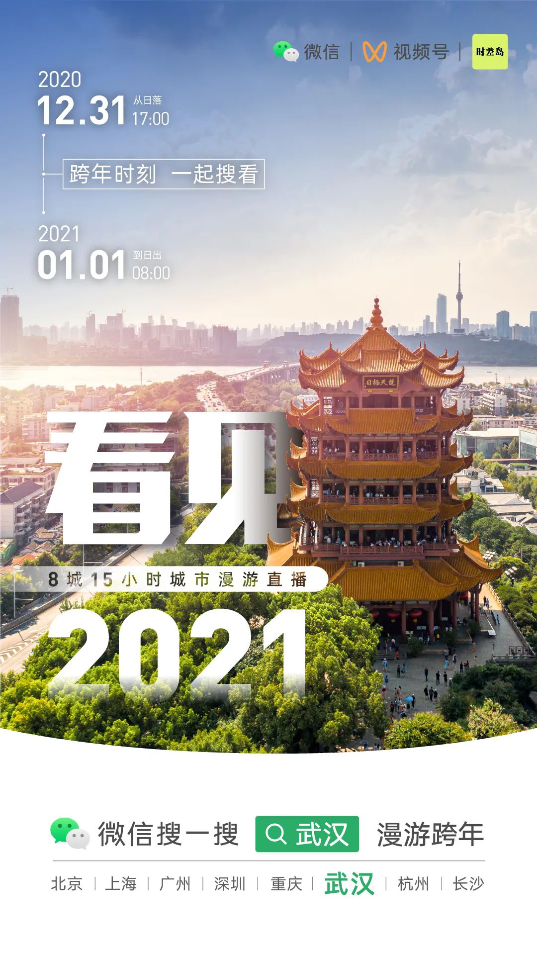 微信「搜一搜」联动包括武汉在内的8个城市,为你奉上「看见2021」跨年直播,与全国的小伙伴一起告别2020年最后的夜晚,共同迎来2021年的第一缕曙光。