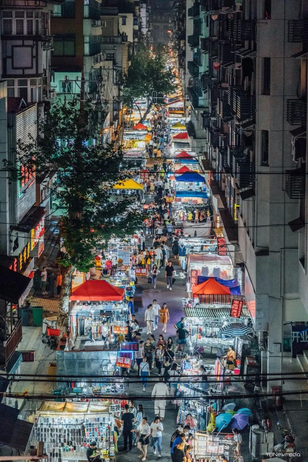 户部巷相对安静些,大家忙于吃东西,根本懒得说话。中山大道、楚河汉街和光谷步行街霓虹闪耀,帅哥靓女看得是不想眨眼。
