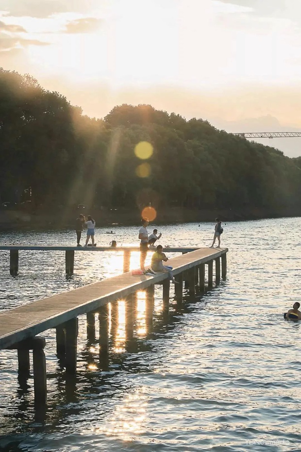 你能看到长江边和东湖上,夕阳西下,水波荡漾。
