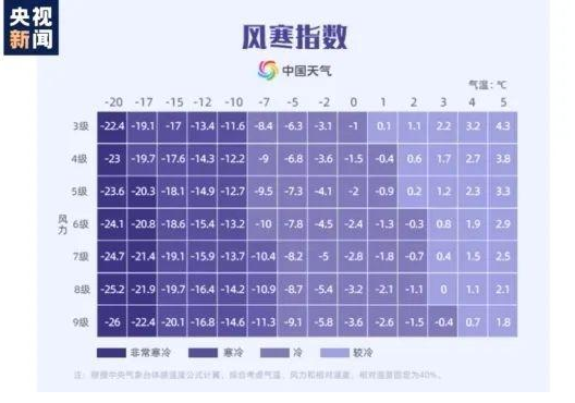 从大量的科学实验中,人们找出了风速大小和人体冷暖感觉的关系,并大致计算出这样的数据:当气温在0℃以上时,风力每增加2级,人的寒冷感觉会下降3~5℃;气温在0℃以下时,风力每增加2级,人的寒冷感觉会下降6~8℃。