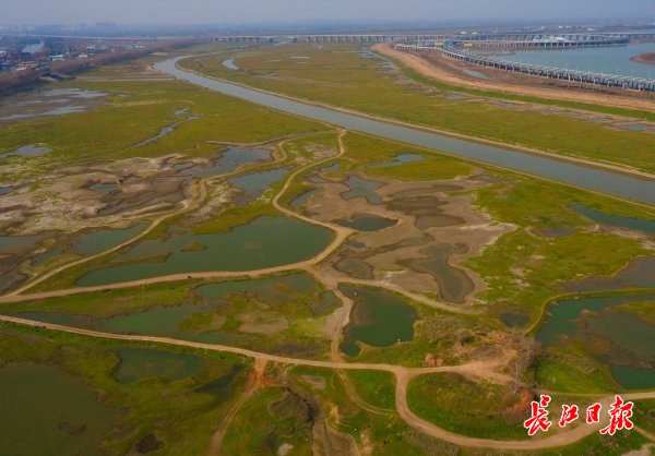 1月17日,府河东西湖大堤外,大量滩涂露出水面,不少市民前来踏青郊游。 记者李永刚 摄