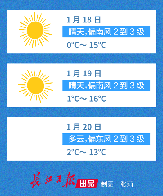 长江日报-长江网1月17日讯(记者龚萍 通讯员王艺霖)今天的暖阳让你感到温暖了吗?且看未来两天的晴好天气,武汉的气温又将升至15℃以上,“暖如春”的天气又会返场。