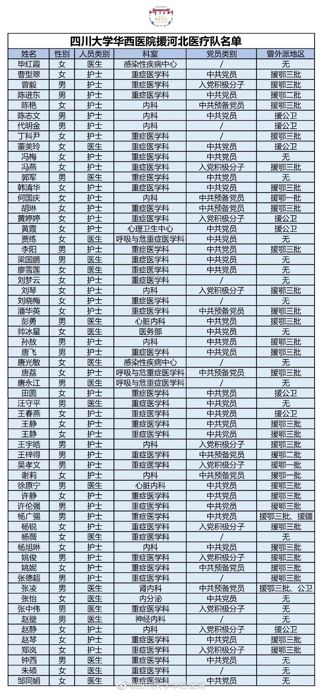 四川大学华西医院61名医护人员