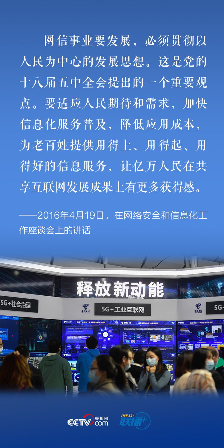 “网信事业要发展,必须贯彻以人民为中心的发展思想”,“让互联网更好造福人民”,“让亿万人民在共享互联网发展成果上有更多获得感”……