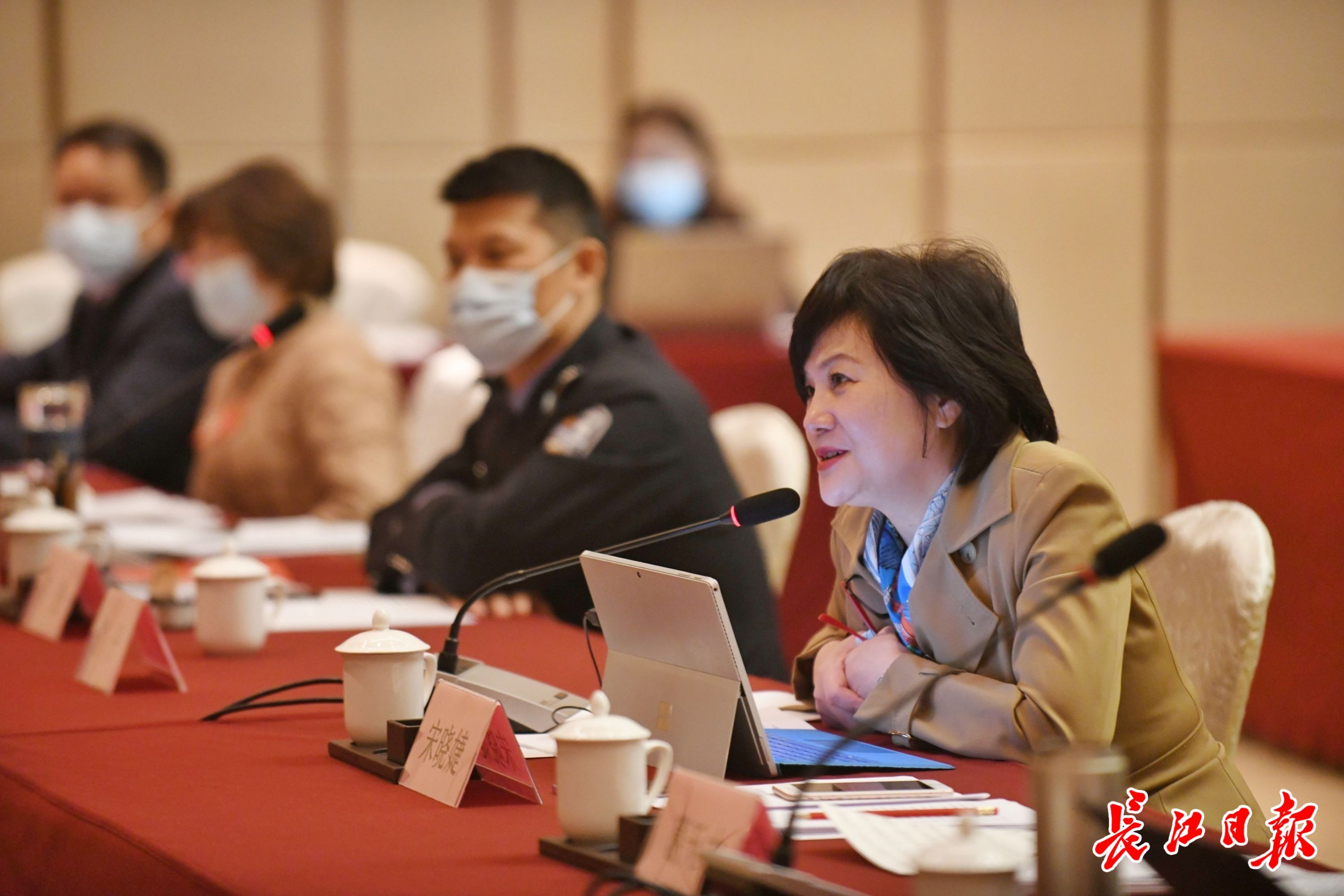 26日上午,武汉代表团进行小组审议,省人大代表宋晓婕发言。记者苗剑 摄