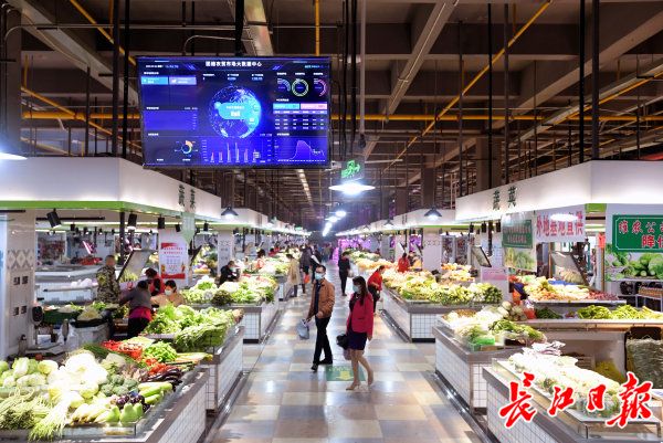 东西湖区长青街农投惠万家团结生鲜市场升级改造,智慧系统汇聚市场内商品、价格等各种信息大数据。记者刘斌 摄