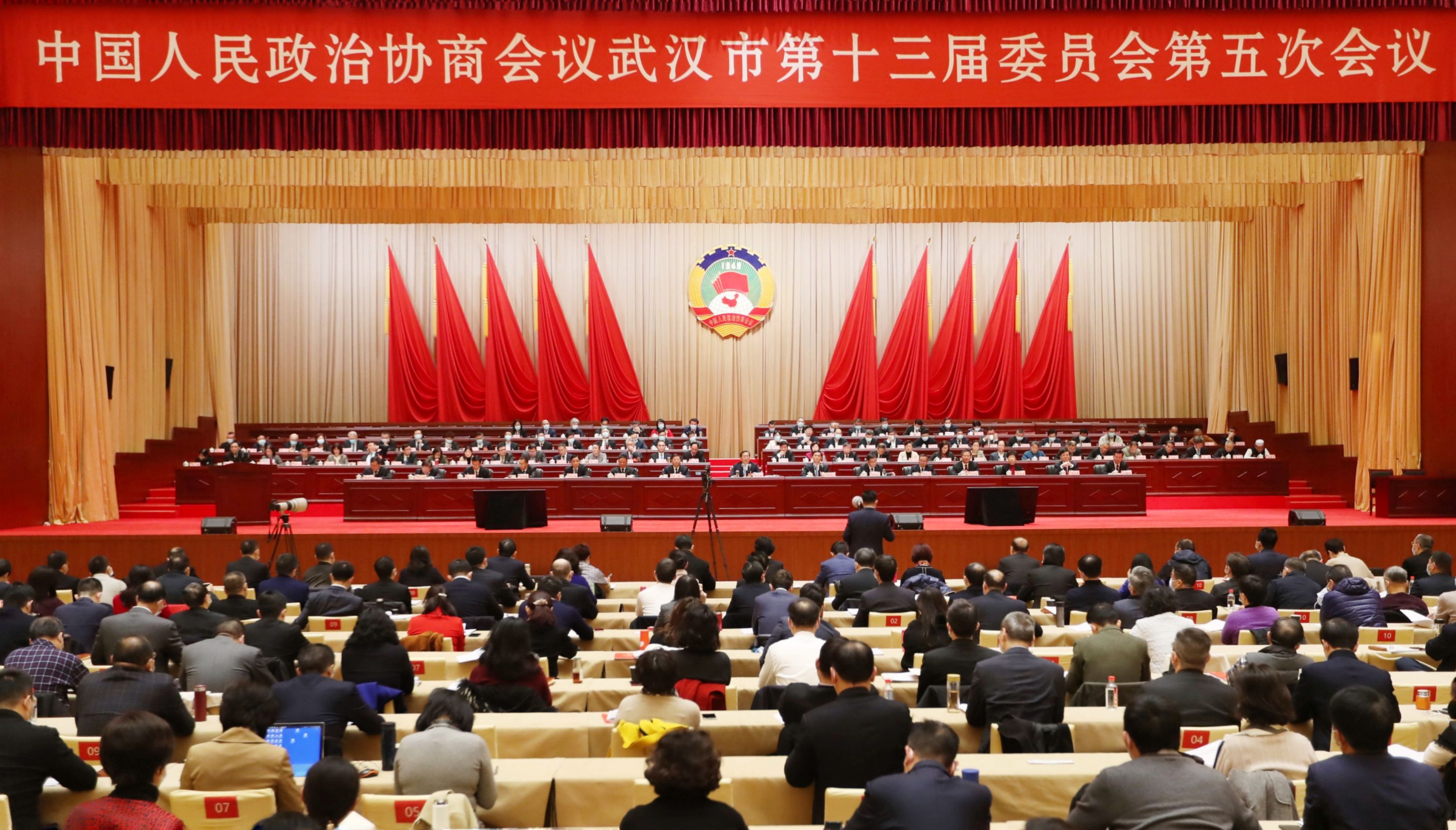 政协武汉市第十三届委员会第五次会议大会主席团成员在主席台就座。