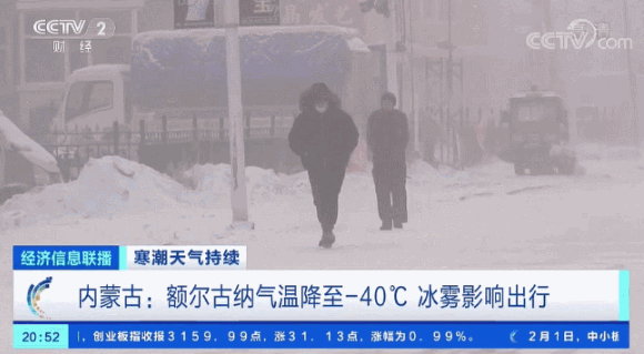 气象部门预计,未来三天内蒙古东北部的气温仍将低于-40℃。