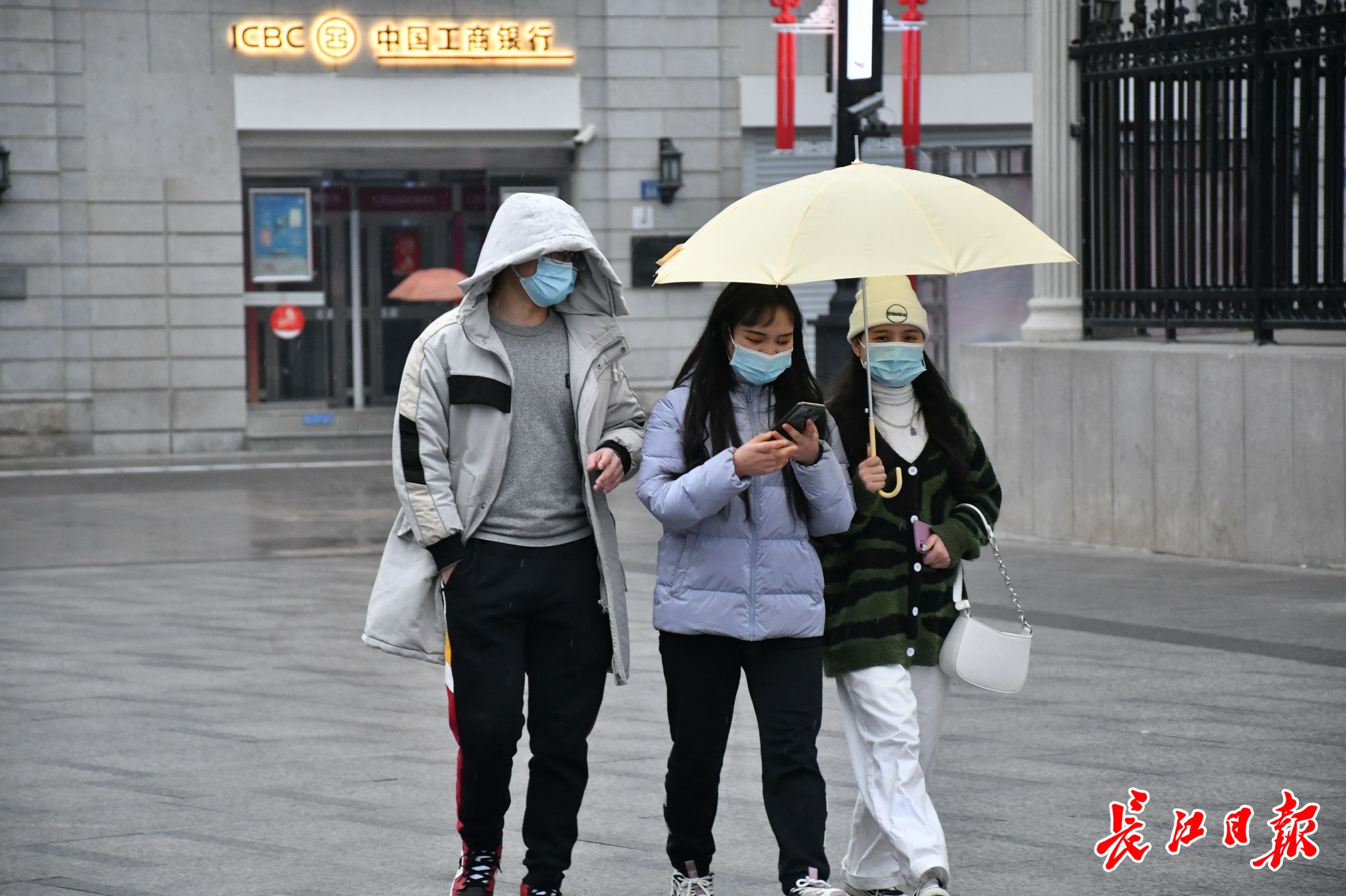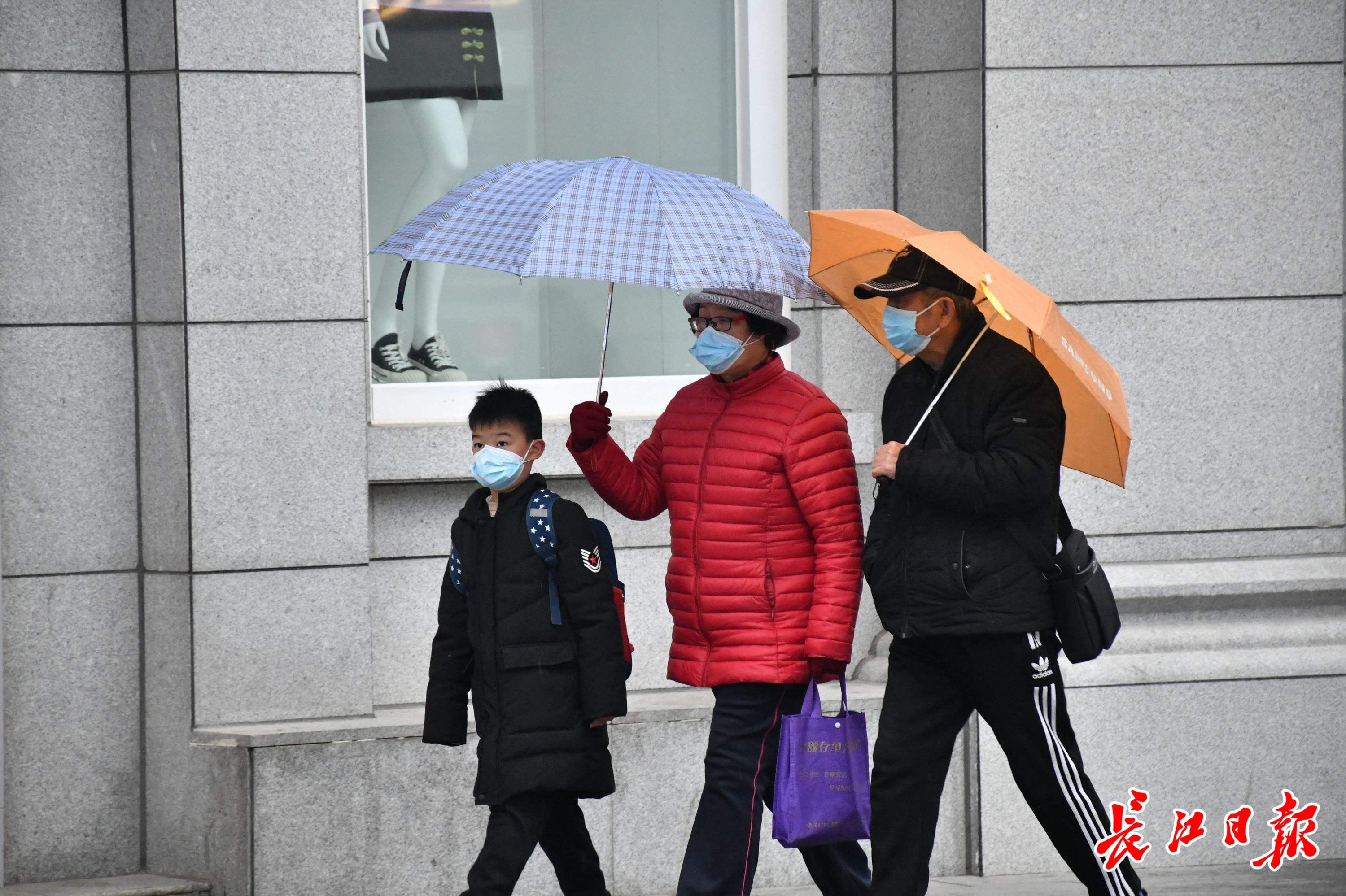 2月7日,阴雨绵绵,在汉口江汉路步行街,人们撑着伞赶路。记者詹松 摄