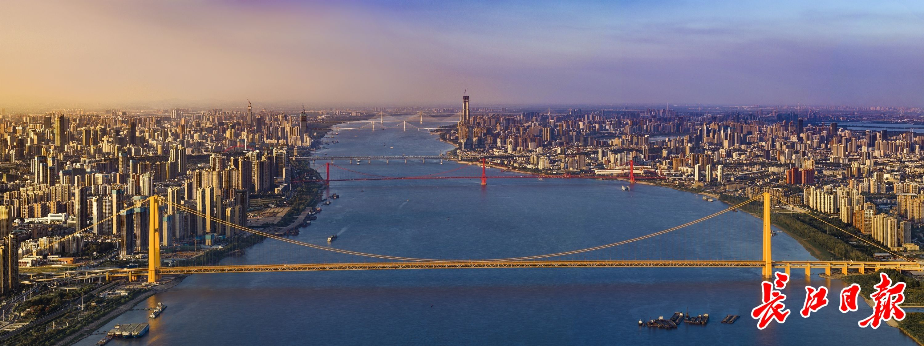 图:长江武汉段上空,空气通透,一眼可见6座桥。 记者陈卓 摄