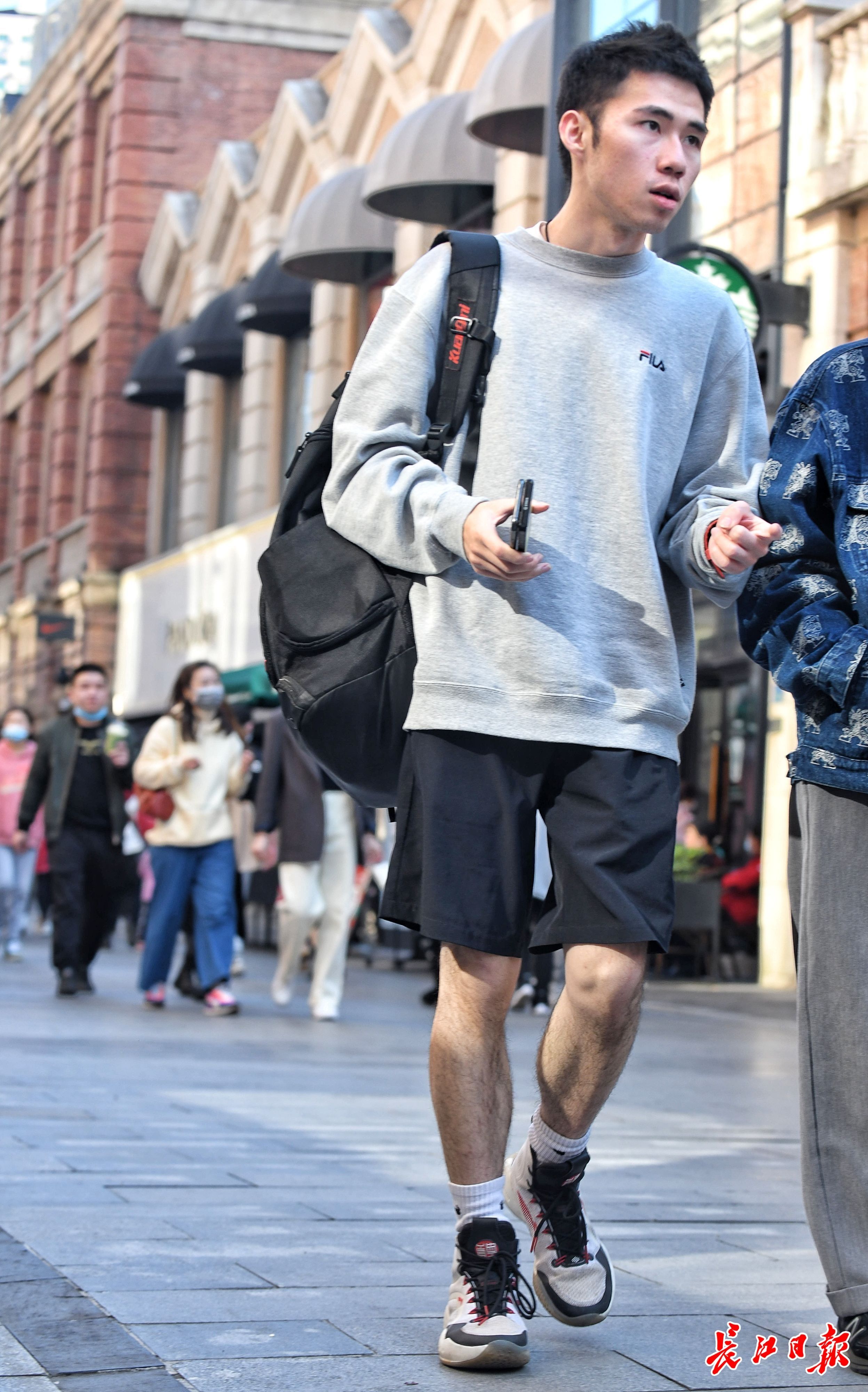 2月19日,武汉街头已有市民穿上夏装。记者苗剑 摄