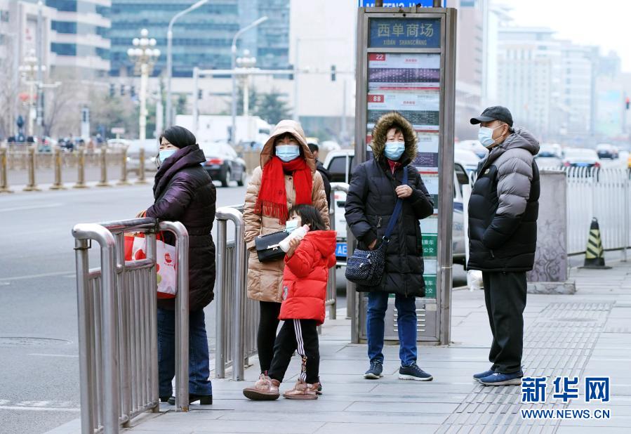 2月23日,市民在北京市西城区西单商场公交站等车。当日,受冷空气影响,北京市气温大幅下降。新华社记者任超 摄