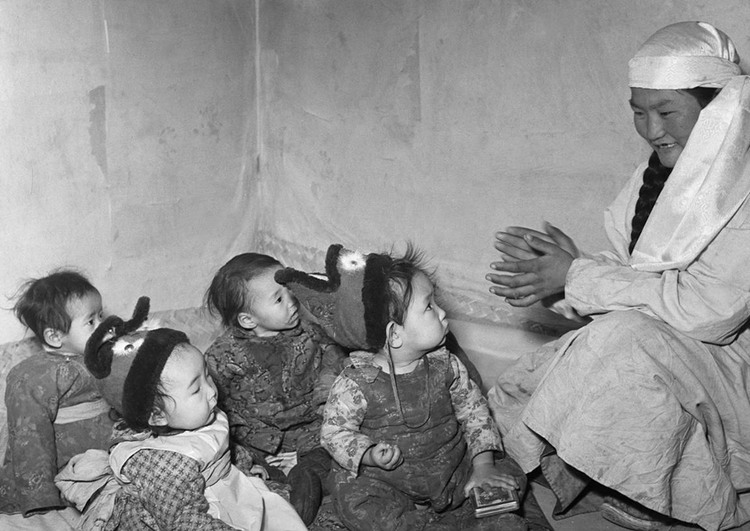 1961年,在哈音哈尔瓦公社卫生院当护理员的张凤仙,和在畜牧场工作的丈夫道尔吉商量,收养了6个孩子。小鸟归巢,孩子们终于有了一个家。