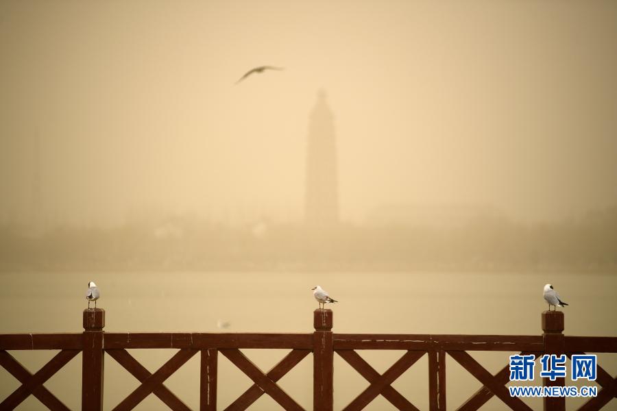 3月16日,宁夏银川沙尘天气持续,风力有所减弱,由强沙尘暴天气降为浮尘天气。自3月15日凌晨开始,宁夏中北部自北向南出现强沙尘暴天气。新华社记者王鹏 摄