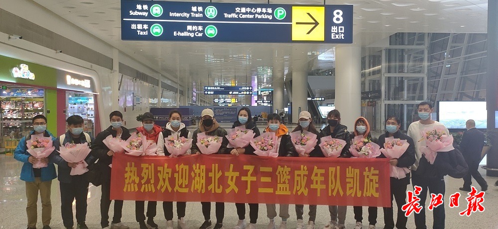 湖北三人女篮凯旋。长江日报记者张琳 摄