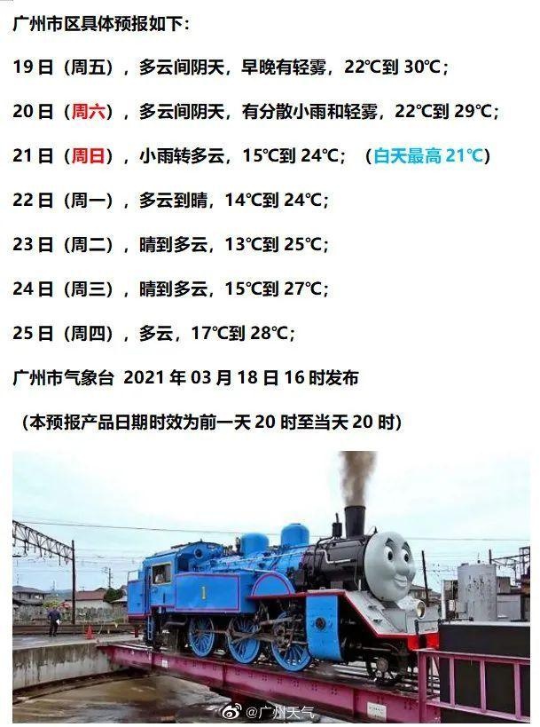 预计,18-19日广东大部分市县多云为主局部有阵雨;早晚有(轻)雾。